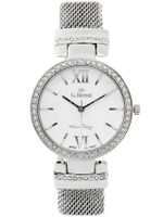 Zegarek damski GINO ROSSI 8123 - BRAVIA Opis zegarka: Mechanizm: kwarcowy "MIYOTA" 2035 produkowany przez "Citizen Watch, LTD" zasilany baterią sr-626 (srebrowa).Koperta: Wysokogatunkowa stalowa - pokryta utwardzoną powłoką IPG/IPSSzkiełko: wysokiej jakości szkiełko mineralne, odporne na zarysowania.Bransoleta: Wytrzymała, solidna, stalowa - pokryta utwardzoną powłoką IPG/IPSWodoszczelność: Water Resist 3ATM - zegarek uszczelniony, odporny na zachlapanie.Tarcza: Sygnowana logiem producenta. Kolor BIAŁY.Technologia HQ PLATING IPG/IPS Jonowa metoda napylania powłoki zegarka, zapewniająca jednolitą, gładką powierzchnię oraz podwyższoną odporność na ścieranie Nickel free: zegarek nie uczula - antyalergiczny. Wymiary:- koperta : szerokość 36 mm, wysokość 38 mm- tarcza : średnica: 30 mm- szerokość bransolety: 16 mm- grubość zegarka: 10 mm- obwód zegarka: min. 17,5 cm, max: 20,5 cm