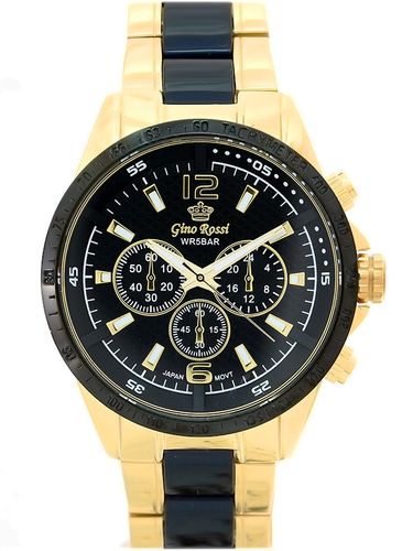 Opis zegarka: Mechanizm: kwarcowy "MIYOTA" 2035 produkowany przez "Citizen Watch, LTD" zasilany baterią sr-626 (srebrowa).Koperta: Wysokogatunkowa stalowa - pokryta utwardzoną powłoką IPG/IPSSzkiełko: wysokiej jakości szkiełko mineralne, odporne na zarysowania.Bransoleta: Stalowa, zapięcie z zatrzaskiem sygnowane logiem producenta, bransoletka pokryta utwardzoną powłoką IPG/IPSWodoszczelność: Water Resist 5 BAR - zegarek uszczelniony, odporny na zachlapanie.Tarcza: Sygnowana logiem producenta. Małe ozdobne tarcze i wskazówki: nieruchome imitacje wskazań chronografu. Technologia HQ PLATING IPG/IPS Jonowa metoda napylania powłoki zegarka, zapewniająca jednolitą, gładką powierzchnię oraz podwyższoną odporność na ścieranie Nickel free: zegarek nie uczula - antyalergiczny. Wymiary: Koperta: ( szer: 43 mm / wys: 51 mm / gr: 12 mm ) Tarcza: ( średnica 39 mm ) Bransoleta : ( szer: 20 mm) Zapięcie : ( max: 20,5 cm ) Zmniejszenie długości możliwe poprzez usunięcie ogniw bransolety.