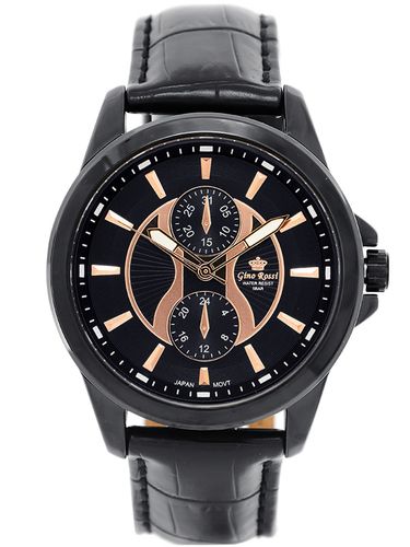 Opis zegarka: Mechanizm: kwarcowy "MIYOTA" 2035 produkowany przez "Citizen Watch, LTD" zasilany baterią sr-626 (srebrowa).Koperta: Wysokogatunkowa stalowa - pokryta utwardzoną powłoką IPG/IPSSzkiełko: wysokiej jakości szkiełko mineralne, odporne na zarysowania.Pasek: Wytrzymały, solidny, skórzany.Wodoszczelność: Water Resist 5 BAR - zegarek uszczelniony, odporny na zachlapanie.Tarcza: Sygnowana logiem producenta. Dodatkowe dekoracyjne ozdobne tarcze i wskazówki: nieruchome imitacje wskazań chronografu. Technologia HQ PLATING IPG/IPS Jonowa metoda napylania powłoki zegarka, zapewniająca jednolitą, gładką powierzchnię oraz podwyższoną odporność na ścieranieNickel free: zegarek nie uczula - antyalergiczny.Wymiary:- koperta : szerokość 44 mm, wysokość 48 mm- tarcza : szerokość 35 mm, wysokość 35 mm- szerokość paska: 22 mm- grubość zegarka: 10 mm- zapięcie zegarka min: 14,5 cm, max: 21,5 cm