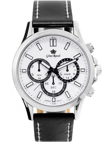 Opis zegarka: Mechanizm: kwarcowy "MIYOTA" 2035 produkowany przez "Citizen Watch, LTD" zasilany baterią sr-626 (srebrowa).Koperta: Wysokogatunkowa stalowa - pokryta utwardzoną powłoką IPG/IPSSzkiełko: wysokiej jakości szkiełko mineralne, odporne na zarysowania.Pasek: Wytrzymały, solidny, skórzany.Wodoszczelność: Water Resist 3ATM - zegarek uszczelniony, odporny na zachlapanie.Tarcza: Sygnowana logiem producenta. Dodatkowe dekoracyjne ozdobne tarcze i wskazówki: nieruchome imitacje wskazań chronografu.Technologia HQ PLATING IPG/IPS Jonowa metoda napylania powłoki zegarka, zapewniająca jednolitą, gładką powierzchnię oraz podwyższoną odporność na ścieranieNickel free: zegarek nie uczula - antyalergiczny. Wymiary: - koperta : szerokość 45 mm, wysokość 51 mm- tarcza : szerokość 38 mm, wysokość 38 mm- szerokość paska: 19 mm- grubość zegarka: 12 mm- zapięcie zegarka min: 16 cm, max: 21,5 cm