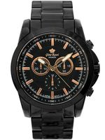 Opis zegarka: Mechanizm: kwarcowy "MIYOTA" 2035 produkowany przez "Citizen Watch, LTD" zasilany baterią sr-626 (srebrowa).Koperta: Wysokogatunkowa stalowa - pokryta utwardzoną powłoką IPG/IPSSzkiełko: wysokiej jakości szkiełko mineralne, odporne na zarysowania.Bransoleta: Stalowa, zapięcie z zatrzaskiem sygnowane logiem producenta, bransoletka pokryta utwardzoną powłoką IPG/IPSWodoszczelność: Water Resist 5 BAR - zegarek uszczelniony, odporny na zachlapanie.Tarcza: Sygnowana logiem producenta. DATOWNIKMałe ozdobne tarcze i wskazówki: nieruchome imitacje wskazań chronografu. Technologia HQ PLATING IPG/IPS Jonowa metoda napylania powłoki zegarka, zapewniająca jednolitą, gładką powierzchnię oraz podwyższoną odporność na ścieranieNickel free: zegarek nie uczula - antyalergiczny. Wymiary: - koperta: szerokość 45 mm, wysokość 49 mm- tarcza: średnica 35 mm- szerokość bransolety: 20 mm- grubość zegarka: 11 mm- zapięcie zegarka: max 20 cmMożliwość regulacji bransolety przez usunięcie ogniw.
