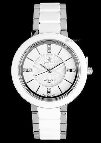 Gino Rossi TOSCA to biżuteryjny zegarek w stylu fashion przeznaczony dla kobiet. Wyposażono go w bardzo dokładny mechanizm kwarcowy. Kopertę wykonano ze stali i osadzono w niej bardzo wytrzymałe szkło mineralne. Bransoleta stalowa połączona z elementami tworzywa sztucznego. Tarcza koloru białego idealnie komponuje z oznaczeniami godzin, co sprawia, że jest przyjmna dla wzroku, przejrzysta i czytelna. Wodoszczelność 50M pozwala na sporadyczny kontakt z wodą np. mycie rąk czy zachlapanie.