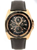 Opis zegarka: Mechanizm: kwarcowy "MIYOTA" 2035 produkowany przez "Citizen Watch, LTD" zasilany baterią sr-626 (srebrowa).Koperta: Wysokogatunkowa stalowa - pokryta utwardzoną powłoką IPG/IPSSzkiełko: wysokiej jakości szkiełko mineralne, odporne na zarysowania.Pasek: Wytrzymały, solidny, skórzany.Wodoszczelność: Water Resist 5 BAR - zegarek uszczelniony, odporny na zachlapanie.Tarcza: Sygnowana logiem producenta. Dodatkowe dekoracyjne ozdobne tarcze i wskazówki: nieruchome imitacje wskazań chronografu. Technologia HQ PLATING IPG/IPS Jonowa metoda napylania powłoki zegarka, zapewniająca jednolitą, gładką powierzchnię oraz podwyższoną odporność na ścieranie Nickel free: zegarek nie uczula - antyalergiczny. Wymiary: Koperty: ( szer: 45 mm / wys: 50 mm / gr: 10 mm ) Tarczy: ( szer: 35 mm / wys: 35 mm ) Pasek: ( szer: 22 mm ) Długość całego zegarka: 24,5 cm Zapięcie: ( min: 18 cm / max 22,5 cm )