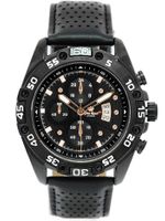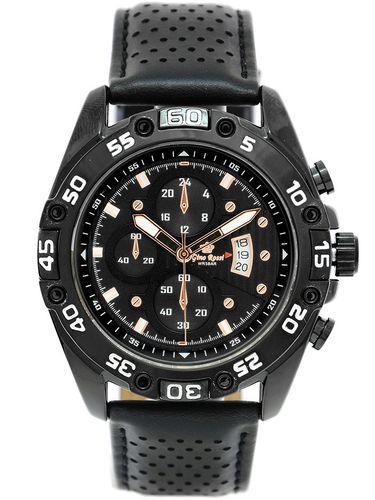 Opis zegarka: Mechanizm: kwarcowy "MIYOTA" 2035 produkowany przez "Citizen Watch, LTD" zasilany baterią sr-626 (srebrowa).Koperta: Wysokogatunkowa stalowa - pokryta utwardzoną powłoką IPG/IPSSzkiełko: wysokiej jakości szkiełko mineralne, odporne na zarysowania.Pasek: Wytrzymały, solidny, skórzany.Wodoszczelność: Water Resist 3ATM - zegarek uszczelniony, odporny na zachlapanie.Tarcza: Sygnowana logiem producenta. DatownikDodatkowe dekoracyjne ozdobne tarcze i wskazówki: nieruchome imitacje wskazań chronografu.Technologia HQ PLATING IPG/IPS Jonowa metoda napylania powłoki zegarka, zapewniająca jednolitą, gładką powierzchnię oraz podwyższoną odporność na ścieranieNickel free: zegarek nie uczula - antyalergiczny. Wymiary: Koperty: ( szer: 45mm / wys: 51 mm / gr: 12 mm ) Tarczy: ( szer: 38 mm / wys: 38 mm ) Pasek: ( szer: 19 mm ) Zapięcie: ( min: 18 cm / max 22 cm )
