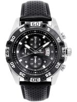 Opis zegarka: Mechanizm: kwarcowy "MIYOTA" 2035 produkowany przez "Citizen Watch, LTD" zasilany baterią sr-626 (srebrowa).Koperta: Wysokogatunkowa stalowa - pokryta utwardzoną powłoką IPG/IPSSzkiełko: wysokiej jakości szkiełko mineralne, odporne na zarysowania.Pasek: Wytrzymały, solidny, skórzany.Wodoszczelność: Water Resist 3ATM - zegarek uszczelniony, odporny na zachlapanie.Tarcza: Sygnowana logiem producenta. DatownikDodatkowe dekoracyjne ozdobne tarcze i wskazówki: nieruchome imitacje wskazań chronografu.Technologia HQ PLATING IPG/IPS Jonowa metoda napylania powłoki zegarka, zapewniająca jednolitą, gładką powierzchnię oraz podwyższoną odporność na ścieranieNickel free: zegarek nie uczula - antyalergiczny. Wymiary: Koperty: ( szer: 45mm / wys: 51 mm / gr: 12 mm ) Tarczy: ( szer: 38 mm / wys: 38 mm ) Pasek: ( szer: 19 mm ) Zapięcie: ( min: 18 cm / max 22 cm )