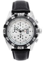 Opis zegarka: Mechanizm: kwarcowy "MIYOTA" 2035 produkowany przez "Citizen Watch, LTD" zasilany baterią sr-626 (srebrowa).Koperta: Wysokogatunkowa stalowa - pokryta utwardzoną powłoką IPG/IPSSzkiełko: wysokiej jakości szkiełko mineralne, odporne na zarysowania.Pasek: Wytrzymały, solidny, skórzany.Wodoszczelność: Water Resist 3ATM - zegarek uszczelniony, odporny na zachlapanie.Tarcza: Sygnowana logiem producenta. DatownikDodatkowe dekoracyjne ozdobne tarcze i wskazówki: nieruchome imitacje wskazań chronografu.Technologia HQ PLATING IPG/IPS Jonowa metoda napylania powłoki zegarka, zapewniająca jednolitą, gładką powierzchnię oraz podwyższoną odporność na ścieranieNickel free: zegarek nie uczula - antyalergiczny. Wymiary: Koperty: ( szer: 45mm / wys: 51 mm / gr: 12 mm ) Tarczy: ( szer: 38 mm / wys: 38 mm ) Pasek: ( szer: 19 mm ) Zapięcie: ( min: 18 cm / max 22 cm )