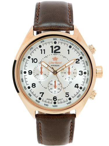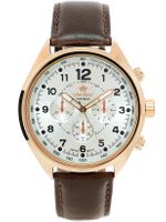 Opis zegarka: Mechanizm: kwarcowy Miyota produkowany przez Citizen Watch, zasilany baterią sr-626.Koperta: Wysokogatunkowa stalowa - pokryta utwardzoną powłoką IPG/IPSSzkiełko: wysokiej jakości szkiełko mineralne, odporne na zarysowania.Pasek: Wytrzymały, solidny, skórzany.Wodoszczelność: Water Resist 5 BAR - zegarek uszczelniony, odporny na zachlapanie.Tarcza: Sygnowana logiem producenta. Dodatkowe dekoracyjne ozdobne tarcze i wskazówki: nieruchome imitacje wskazań chronografu.Technologia HQ PLATING IPG/IPS Jonowa metoda napylania powłoki zegarka, zapewniająca jednolitą, gładką powierzchnię oraz podwyższoną odporność na ścieranieNickel free: zegarek nie uczula - antyalergiczny.Wymiary:koperta: 46 × 52 × 13mmtarcza: 40mmszerokość paska: 21/19,5mmdługość całości: ok. 257mm