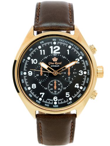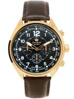 Opis zegarka: Mechanizm: kwarcowy Miyota produkowany przez Citizen Watch, zasilany baterią sr-626.Koperta: Wysokogatunkowa stalowa - pokryta utwardzoną powłoką IPG/IPSSzkiełko: wysokiej jakości szkiełko mineralne, odporne na zarysowania.Pasek: Wytrzymały, solidny, skórzany.Wodoszczelność: Water Resist 5 BAR - zegarek uszczelniony, odporny na zachlapanie.Tarcza: Sygnowana logiem producenta. Dodatkowe dekoracyjne ozdobne tarcze i wskazówki: nieruchome imitacje wskazań chronografu.Technologia HQ PLATING IPG/IPS Jonowa metoda napylania powłoki zegarka, zapewniająca jednolitą, gładką powierzchnię oraz podwyższoną odporność na ścieranieNickel free: zegarek nie uczula - antyalergiczny.Wymiary:koperta: 46 × 52 × 13mmtarcza: 40mmszerokość paska: 21/19,5mmdługość całości: ok. 257mm