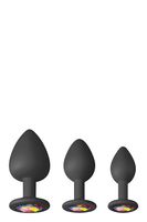 Trzyczęściowy zestaw silikonowych zatyczek ozdobionych klejnotami.