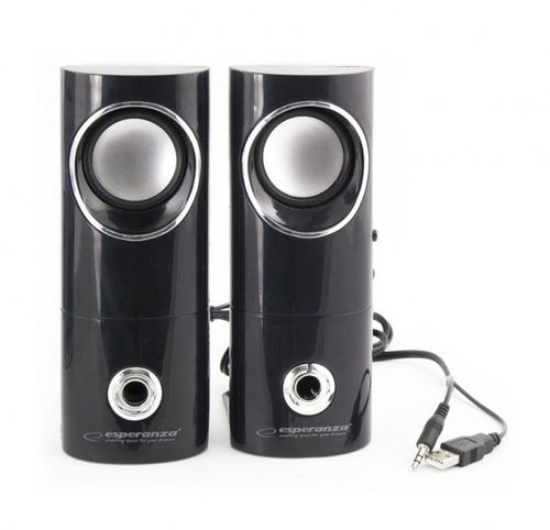 Wysokiej jakości stereofoniczne głośniki do notebooków i komputerów stacjonarnych. Gwarantują czyste i naturalne brzmienie dźwięku. Elegancki wygląd sprawia, że doskonale komponują się na biurku z monitorami LCD i innymi akcesoriami. Współpracują ze wszystkimi komputerami posiadającymi wyjście głośnikowe i wyjście USB. Posiadają wbudowany wyłącznik, regulację głośności oraz wyjście słuchawkowe. Wysokiej jakości materiały użyte do produkcji zabezpieczają przed elektryzowaniem się i przed generowaniem zakłóceń elektromagnetycznych.