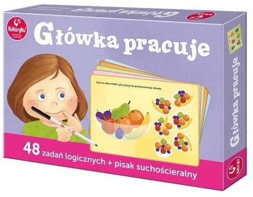 Główka pracuje to zestaw różnorodnych łamigłówek dla dzieci. Duże, kolorowe karty z zadaniami zachęcają do trenowania umysłu i rozwijania zdolności logicznego myślenia. Zestaw znakomicie sprawdzi się podczas długich podróży. Pisak suchościeralny ułatwi szukanie właściwego rozwiązania!