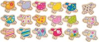 W zestawie 32 sztuki klocków tj. 16 par klocków z wesołymi owieczkamiz serii Susibelle.Gra jest nieco trudniejsza od innych z typu memory, gdyż wzór na obrazkach jest taki sam, a różnią się jedynie kolorystyką owieczek.