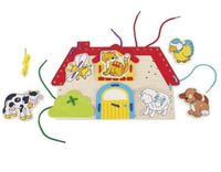 Zestaw zawiera:- drewnianą planszę domek- 9 drewnianych elementów w tym: pszczółka, kotek, ptaszek, krowa, pies i owieczka- 12 sznurków do przeplatania w sześciu kolorach