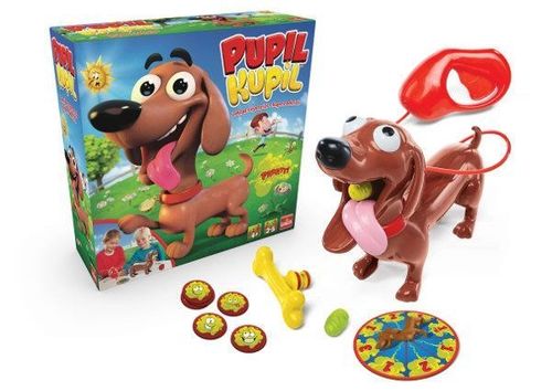Przed każdą grą, należy nakarmić Pupila. Usuń kośc z jego pyska, wsuń porcję karmy - popychając palcem, następnie umieść spowrotem kość w pysku.