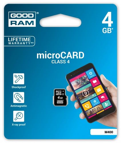 EAN: 5908267913291 Gwarancja: gwarancja wieczysta Kod dostawcy: M400-0040R11 Pojemność pamięci flash: 4 GB Typ kart pamięci: microSD Prędkość odczytu: 15 MB/s Prędkość zapisu: 5 MB/s Klasa pamięci: Class4 Standard pamięci SD / CF: SDHC Adapter: Nie Czytnik USB: Nie Pozostałe parametry: Wymiary opakowania: 70 x 125 mm