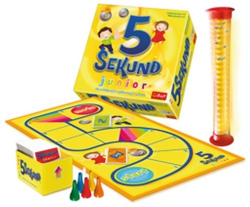 TREFL Gra - 5 Sekund Junior 01138 Przygotowane specjalnie z myślą o najmłodszych graczach wydanie gry 5 sekund! Z pewnością bez trudu jesteś w stanie wymienić 3 smaki dżemu - ale czy dasz radę zrobić to pod presją czasu? Masz 5 sekund, a pozostali gracze tylko czekają na Twoje potknięcie! Czas nie jest Twoim sprzymierzeńcem, dlatego mówisz co ci ślina na język przyniesie. Podajesz czasem dziwaczne, czasem śmieszne odpowiedzi, podczas gdy kulki szybko mkną w dół spirali specjalnego czasomierza. Jeśli pytanie sprawia ci kłopot - wykorzystujesz karty "Czasu" lub "Zmiany". Na żółtej stronie kart znajdują się pytania dla młodszych dzieci, a na czerwonej dla starszych. 5 sekund - szalona i zabawna gra teraz w wersji junior! Zawartość pudełka:- 354 karty z pytaniami (708 pytań), - 18 kart "Czas", - 18 kat "Zmiana", - 6 pionków, - specjalny czasomierz, - plansza, - pudełko na karty, - instrukcja. Zabawka dla dziecka: 6 lat + Ilość graczy: 3 - 6 Wymiary opakowania: 26,00 x 26,00 x 8,00 cm Waga (z opakowaniem): 1,25 kg