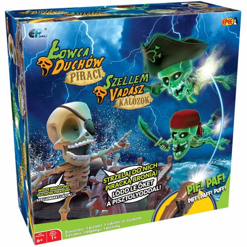 Gra zręcznościowa EPEE Łowca Duchów Piraci to ciekawa i nowoczesna rozgrywka. Na ścianach pokoju zagoszczą piraci, a zadaniem dzieci jest złapać ich jak najwięcej. Teraz każde dziecko może wcielić się w łowcę piratów i sprawdzić swoją niebywałą skuteczność! Kto jest szybszy i bardziej spostrzegawczy? Kto ma lepszą celność? Ta gra rozwieje wszystkie wątpliwości. W ciemnym pokoju należy rozstawić czaszkę – projektor. Dzięki niej na ścianach pokoju zagoszczą jasne, straszliwe lecz niegroźne duchy piratów! Zadaniem gracza jest jak najszybciej rozprawić się z duchami na ścianach.