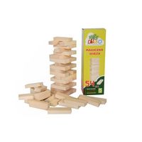 Magiczna wieża, wyprodukowana w Polsce. Klocki z drewna bukowego o wym.7,5x2,5x1,3 cm. W opakowaniu 54 sztuki.