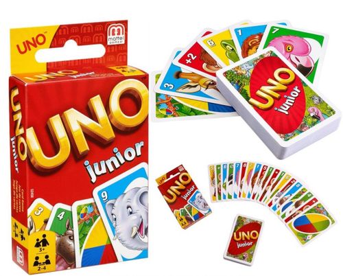 UNO® Junior to łatwa i kolorowa gra karciana dla dzieci. Karty są przyjazne dla najmłodszch graczy i mają obrazki z 11 zwierzątami.