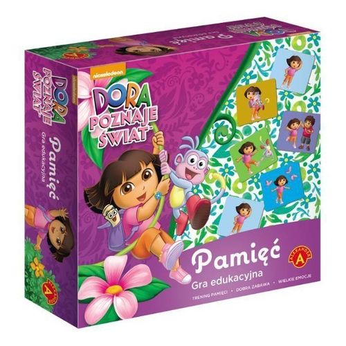 W grze "Pamięć - Dora poznaje świat" wygrywa ten, kto najlepiej zapamięta położenie par takich samych obrazków, odkrytych na chwilę, spośród wszystkich ilustrowanych tabliczek leżących na stole rewersem do góry.