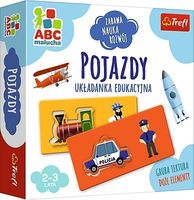 Pojazdy to układanka edukacyjna stworzona z myślą o najmłodszych. Podczas radosnej zabawy dzieci uczą się nazw różnych środków transportu, ich właściwości oraz nazw osób, które je prowadzą. Rozwijająca zabawa, w której dziecko ćwiczy zdolności poznawcze, spostrzegawczość i logiczne myślenie.