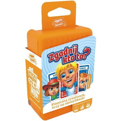 wszędzie ze sobą. Karciana wersja klasycznej gry, w której musisz odgadnąć, kogo wybrał twój przeciwnik. Odwracaj karty, aż znajdziesz tę właściwą. Dzięki aplikacji możesz włączyć do gry zdjęcia swoich bliskich i znajomych. To dopiero zabawa! Wystarczy, że zrobisz zdjęcie smartfonem, otworzysz je w aplikacji Shuffle i możesz założyć znajomemu kapelusz, kolorową perukę, śmieszną brodę czy okulary. Możliwość dosłania pustego ekspozytora o wymiarach: 25 x 20 x 14,5 cm.