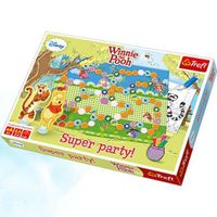 TREFL Gra Super Party 01004 Mieszkańcy Stuwiekowego Lasu uwielbiają wizyty gości. Prosiaczek często wpada do Kubusia, a Kłapouchy cieszy się zawsze, gdy odwiedza go Kangurzyca z Maleństwem. Gdy Ty wybierzesz się do nich z wizytą, pomyśl o słodkim podarunku, który sprawiłby radość wszystkim przyjaciołom… Zabierz ze sobą garnuszek supersmacznego miodku! Na pewno się ucieszą! W grze występują żetony słoików z miodkiem, które gracze muszą poroznosić do domków przyjaciół. W zależności od ilości graczy zmienia się ilość domków które trzeba odwiedzić. Po drodze gracze mogą natrafić na różnego rodzaju pola specjalne, które mogą im pomóc lub utrudnić im grę. Wygrywa gracz który pierwszy rozniesie określoną ilość słoików. Zabawka dla dziecka: 4 lata + Wymiary opakowania: 26,50 x 39,00 x 4,00 cm Waga (z opakowaniem): 1,90 kg