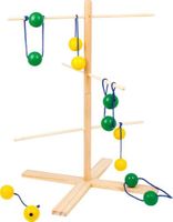 Gra z kulkami Gaucho Gaucho" jest dobrą zabawką, którą rodzic powinien sprawić swojemu dziecku. To nic innego, jak wspaniała gra zręcznościowa, idealna wręcz do rozwoju motoryki i koordynacji wzrokowo - ruchowej dziecka. Dwie kolorowo polakierowane kule połączono ze sobą za pomocą mocnej tasiemki. Cała sztuka polega na tym, by rzucić kulkami w taki sposób, aby żółte i zielone zaczepiły się o drewniane drążki stojaka, jeden kolor nad drugim. Każdy gracz musi wystawić swoją cierpliwość na próbę. Szybki montaż stojaka zapewnia drewniana śruba oraz wkładane drążki. Znakomity sposób na zabawę w domu lub ogrodzie, zabicie nudy, jak i pomysłowe spędzenie wspólnego czasu.