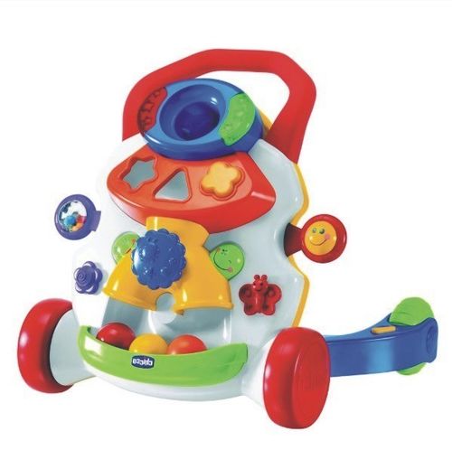 Chicco Grający Pchacz pomaga dziecku przy stawianiu pierwszych kroków, będąc bezpiecznym i solidnym punktem oparcia. Każdemu krokowi towarzyszy wesoła melodyjka, co dopinguje dziecko do ćwiczenia techniki chodzenia.