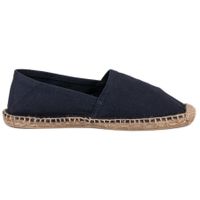 Modne buty na lato dla każdej kobiety, niezależnie od wieku - espadryle. Tym razem w nietuzinkowym, granatowym wariancie kolorystycznym. Wykonane z tekstylnego materiału obuwie w uniwersalnym, casualowym stylu, który spodoba się niemal każdemu. Buty są wsuwane i nie posiadają obcasów, przez co są wygodne w użytkowaniu.