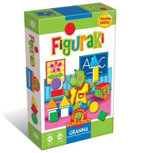 W trakcie gry Figuraki dzieci uczą się rozpoznawać podstawowe figury geometryczne. Figury występują w sześciu kolorach. Dzieci rzucają dwiema kostkami, jedną z koloromi, drugą z figurami. Znajdują elementy posiadające cechy na kostkach i układają je na planszy. W zestawie naklejki ! Zawartość pudełka:4 dwustronne plansze72 kolorowe elementy kostka z kolorowymi oczkamikostka z figurami geometrycznymiinstrukcja Gra przeznaczona:dla 1 do 4 graczy, w wieku od 3 do 7 lat.