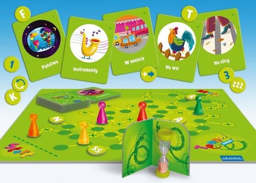 W trakcie gry dzieci wymyślać będą hasła pasujące do zadanych tematów. Ten rodzaj zabawy pozytywnie wpływa na rozwój słownictwa oraz stymuluje kreatywne myślenie. Ukryta klepsydra pomoże w wyćwiczeniu orientacji czasowej, a rozbudowana siatka połączeń na planszy wzmocni orientacje przestrzenną.