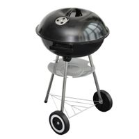 Grill tradycyjny do stosowania z węglem drzewnym i brykietem o charakterystycznym kształcie świetnie sprawdza się podczas grillowania potraw metodą pośrednią i bezpośrednią. Pokrywę grilla można łatwo podnieść w dowolnej chwili dzięki zamontowanemu na niej uchwytowi. U dołu znajduję się półka oraz chromowana kratka przeznaczone na umieszczenie akcesoriów stosowanych podczas grillowania. Grill wyposażony jest w dwa kółka, dzięki którym można go łatwo przesunąć w dowolne miejsce.