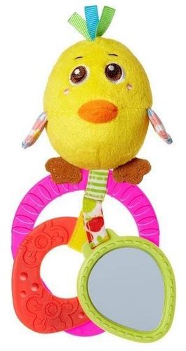 Zabawny, kolorowy kurczaczek to doskonały kompan dziecka, od pierwszych miesięcy jego życia. Kolorowe zawieszki - obręcze można ze sobą łączyć, dopasowywać. Obręcze mają różne kształty, stopień twardości, pokryte są różnymi fakturami i żłobieniami. To pomaga rozwijać koordynację manualną, i stymuluje zmysły dziecka.