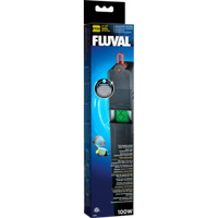 Ciekawą funkcją wyświetlacza jest sygnalizacja przekroczenia zaprogramowanej temperatury – takie sytuacje sporadycznie zdarzają się niekiedy w akwariach na przykład podczas letnich upałów, kiedy to zdarza się że mimo zupełnie niewłączającego się ogrzewania temperatura wody wzrasta po prostu z powodu wysokiej temperatury powietrza oraz ciepła emitowanego przez oświetlenie. W takim przypadku wyświetlacz grzałki zmienia kolor podświetlenia na czerwony, natomiast w sytuacji gdy z jakiegoś powodu temperatura wody nie może osiągnąć zaprogramowanego poziomu – następuje zmiana koloru podświetlenia na niebieski. Do ustawiania temperatury służy czerwona dźwigienka umieszczona nad wyświetlaczem, na górnym końcu grzałki. Wartość aktualnej temperatury wody, mierzona za pomocą dwóch czujników jest wyświetlana w sposób ciągły, więc grzałka pełni również rolę elektronicznego termometru. Fluval E jest grzałką szklaną zamkniętą w ażurowej obudowie z plastiku – z jednej strony chroni ją to przed stłuczeniem, z drugiej – chroni mieszkańców akwarium przed oparzeniem w razie przypadkowego kontaktu z włączoną grzałką. W związku z powyższym Hagen rekomenduje modele o większej mocy również do ogrzewania akwariów z dużymi, silnymi gatunkami ryb. Najwyższej jakości procesor z dwumiejscowym mierzeniem temperatury czuwa aby nad prawidłowym poziomem temperatury w akwarium. Grzałka po wyciągnięciu z wody lub jej ubytku to niebezpiecznego poziomu od razu automatycznie odcina dopływ energii. Dzięki temu mamy pewność, że nie nastąpi pęknięcie. Grzałki cechuje najnowocześniejsza technologia oraz najwyższa jakość wykonania. Specyfikacja: tolerancja termostatu 0,5'C zakres pracy grzałki 20-34'C całkowicie zanurzalna(wodoodporna) w zestawie 2 mocne przyssawki montażowe 5-letnia gwarancja długość 30cm do akwariów max. 120l maksymalny pobór prądu 100W