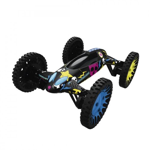 Dron z łatwością zmienisz w samochód wyścigowy. W tym celu przesuń przełącznik na symbol samochodu. Zdejmij śmigła, zamontuj koła i samochód jest gotowy do jazdy. Masz do wyboru kilka poziomów prędkości. Mocny napęd na cztery koła pozwala nawet na jazdę do góry nogami.