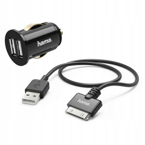 HAMA Ładowarka Samochodowa + Kabel Iphone