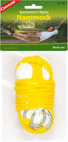 Kompaktowy hamak, wykonany z mocnego nylonu. Zajmuje bardzo mało miejsca, można go zabrać na każdą wyprawę. Idealny podczas wędrówek z plecakiem lub na kempingu. Przystosowany do powieszenia między drzewami.
