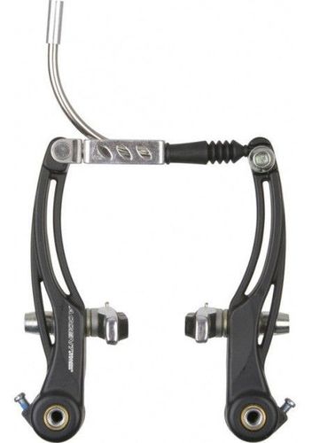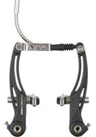 Hamulce typu V-Brake. Wykonane z kutego na zimno aluminium. Ażurowa konstrukcja zapewniająca niską wagę. Liniowa regulacja naprężenia sprężyny. Wysokiej jakości klocki w aluminiowej obudowie. Obrotowy zaczep fajki. Metalowa osłona sprężyny. Długość ramion: 108 mm. Czarne matowe.