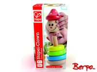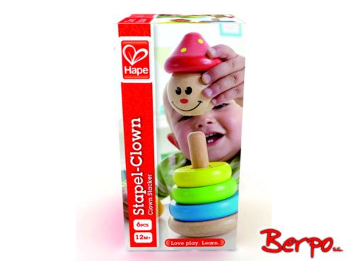 Wykonany z drewna uśmiechnięty klaun to edukacyjna zabawka dla najmłodszych polegająca na wkładaniu na drążek kolorowych kółek w odpowiedniej kolejności.