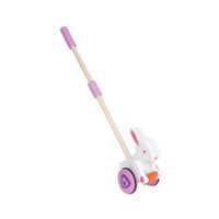 HAPE Pchajka króliczek Hape to niemiecka firma z wieloletnią tradycją w tworzeniu i produkcji unikatowych zabawek dla Dzieci. Założona w 1986 roku marka jest znana na międzynarodowym rynku jako jeden z największych światowych producentów zabawek ekologicznych. Ideą marki Hape jest tworzenie zabawek przyjaznych dla środowiska, a jednocześnie wspierających edukacyjny rozwój Dziecka. Już poprzez zabawę Dziecko może wykształcić w sobie cenne wartości, które zaowocują w jego dalszym życiu. Hape wspiera szczęśliwe dzieciństwo oparte na bezpiecznej zabawie. Do produkcji zabawek użyto wyłącznie naturalnych materiałów oraz farb na bazie wody, a przestrzeganie restrykcyjnych standardów jakości jest normą w całym procesie produkcji. Drewniana zabawka na kijku, pomalowana farbami o żywych kolorach, to idealny sposób, aby przekonać Dziecko do pewniejszego stawiania pierwszych kroków. W czasie spaceru króliczek porusza się - macha łapkami oraz unosi do pyszczka marchewkę, co wywoła u Dziecka niepohamowane wybuchy radości. Dzięki temu chodzenie będzie kojarzyło się Dziecku z czymś przyjemnym i miłym. Cechy przedmiotu: Tradycyjna zabawka do pchania zachwyci i zainteresuje Malucha swoimi żywymi koloramiPomoże Dziecku w stawianiu pierwszych kroków, będzie wsparciem przy rozwijaniu koordynacjiWyprodukowana z wysokiej jakości drewnaErgonomiczny kształt zabawki sprawia, że jest wyjątkowo wygodna do trzymaniaDługość kijka wynosi 50 cmIdealny podarunek na pierwsze urodzinyProdukt jest nowy, fabrycznie zapakowany Kategoria wiekowa: 12m+