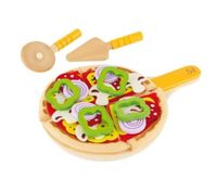 HAPE Pizza 3129 Dzieci uwielbiają pizzę! Pozwól, więc swojemu maluchowi się wykazać i spraw mu wielką radość, wybierając dla niego zestaw Hape pizza. Mały kucharz będzie mógł zaprezentować dzięki temu swoje umiejętności, ćwiczyć wyobraźnię i eksperymentować. Nie ma nic fajniejszego, niż super zabawa w dom czy restaurację! To niezwykła inspiracja do poszerzania swoich umiejętności kulinarnych. Dziecko dzięki takiej zabawce doskonali swe zdolności manualne. Każdy element może wziąć do rączek, sprawdzić jego kształt, zastanowić się, gdzie go dokładnie umieścić. W czasie zabawy angażuje, więc się ruchowo oraz intelektualnie. Ma do czynienia z elementami, które są kolorowe i różnokształtne. Poza tym uczy się, jak wyglądają poszczególne składniki, zapamiętuje, jest zainspirowany do zadawania pytań itd. Mozę też naśladować swoich rodziców, wykonujących taki prawdziwy smakołyk – a to dla każdego malucha prawdziwa radość! Zabawka dla dziecka: 3 lata + Wymiary opakowania: 17,70 x 25,20 x 1,40 cm Waga (z opakowaniem): 0,80 kg