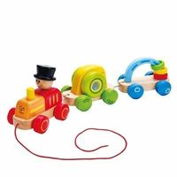 Ten kolorowy pociąg składa się z lokomotywy i 2 wagoników. Każdy z nich to element zachęcający do zabawy. W jednym poruszają się kulki wydając dźwięk, a drugi posiada elementy do przesuwania po grzbiecie wagonu. Nad bezpieczną zabawą czuwa pilny maszynista i zachęca dzieci do wspólnych spacerów. Umożliwia to sznurek zamocowany do lokomotywy.Wiekod 2 latWymiaryop. 39,5x7,5x11 cm