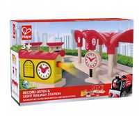 Wraz z rozszerzeniem swojej oferty marka Hape - producent najlepszych zabawek drewnianych - pragnie zaprezentować wysokiej jakości stację kolejową wykonaną z drewna malowanego bardzo trwałymi i bezpiecznymi farbami wodnymi odpornymi na ścieranie. Idealnie pasuje do dowolnego zestawu kolejek Hape. Stacja jest niezwykle atrakcyjnym elementem. Pozwala nagrać swoje własne powitanie dla pasażerów. Posiada również lampkę, zegar, biletomat. Stacja pobudzi u dzieci kreatywność i zapewni świetną zabawę!Wiekod 3 lat