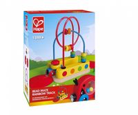 Tor z tęczowym tamburynem to bardzo atrakcyjny dla dzieci dodatkowy element do istniejącego zestawu, ponieważ zaopatrzony jest w przeplatankę, po której można przesuwać koraliki. Tor wykonany jest z drewna malowanego nietoksycznymi farbami wodnymi. Kolory są intensywne, odporne na ścieranie. Idealnie pasuje do dowolnego zestawu kolejek Hape. Jest doskonałym pomysłem na urozmaicenie zabawy. W skład zestawu wchodzi element toru z przeplatanką oraz wagonik.Wiekod 18 miesięcy
