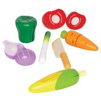 HAPE Warzywa do krojenia Hape to niemiecka firma z wieloletnią tradycją w tworzeniu i produkcji unikatowych zabawek dla Dzieci. Założona w 1986 roku marka jest znana na międzynarodowym rynku jako jeden z największych światowych producentów zabawek ekologicznych. Ideą marki Hape jest tworzenie zabawek przyjaznych dla środowiska, a jednocześnie wspierających edukacyjny rozwój Dziecka. Już poprzez zabawę Dziecko może wykształcić w sobie cenne wartości, które zaowocują w jego dalszym życiu. Hape wspiera szczęśliwe dzieciństwo oparte na bezpiecznej zabawie. Do produkcji zabawek użyto wyłącznie naturalnych materiałów oraz farb na bazie wody, a przestrzeganie restrykcyjnych standardów jakości jest normą w całym procesie produkcji. Hape warzywa to prawdziwa gratka dla małego kucharza! Spraw swojemu dziecku taki wspaniały prezent, dzięki któremu będzie mogło ono przygotowywać przyjęcia i bawić się w dom. To bardzo twórcza i rozwijająca zabawa, maluch ma okazję poznać poszczególne warzywa, sprawdzić, jaki mają kształt i kolor. W dodatku, w zestawie jest zabawkowy nożyk, którym może kroić poszczególne egzemplarze, oczywiście na niby. Połówki łączone są na rzep, więc dziecko ma okazję nauczyć się posługiwać takim nożykiem. Tego typu zabawa jest więc bardzo rozwijająca, uczy odpowiedzialności, wykonywania podstawowych zadań kuchennych. Pozwala też oswoić się z takimi składnikami spożywczymi, które wszak są bardzo zdrowe, powinny więc dziecku miło się kojarzyć. Cały zestaw został przygotowany niezwykle starannie, warzywa wyglądają jak prawdziwe, mają piękne kolory.WIEK: 3+