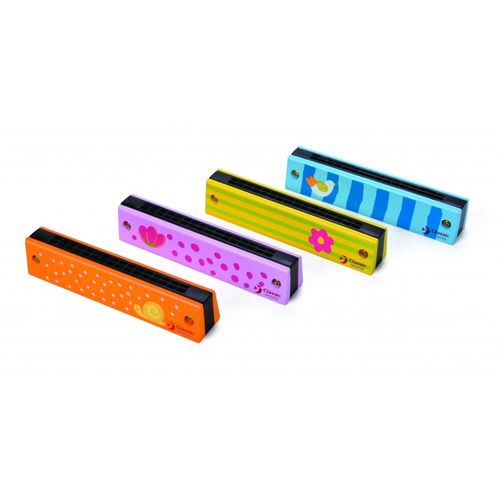 Kolorowa drewniana harmonijka, świetna zabawka dla początkujących, małych muzyków. Dziecko może próbować wygrywać pierwsze dźwięki. Ładne wykonanie i żywa kolorystyka dodatkowo zachęci dziecko do zabawy.