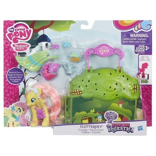 Odkryj magiczne miejsca w Equestrii! Każdy zestaw zawiera kucyka podstawowego i dziesięć dodatków. Zestawy można złożyć tak, by pomieściły w sobie wszystkie elementy i przenosić trzymając za rączkę. Otwierany zestaw ukazuje wnętrze chatki Fluttershy oraz Butiku Rarity. Zeskanuj kod swojego kucyka i odkryj jeszcze więcej przygód dzięki specjalnej aplikacji My Little Pony Friendship Celebration. Cena dotyczy jednek sztuki.Wiekod 3 latWymiaryop. 6,4x27,9x22,2 cm