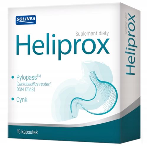Heliprox kapsułki to suplement diety łączący w sobie aktywowane bakterie kwasu mlekowego (Lactobacillus reuteri DSM 17648) z cynkiem. Cynk przyczynia się do prawidłowej syntezy DNA oraz do utrzymania prawidłowego metabolizmu mikroskładników odżywczych.