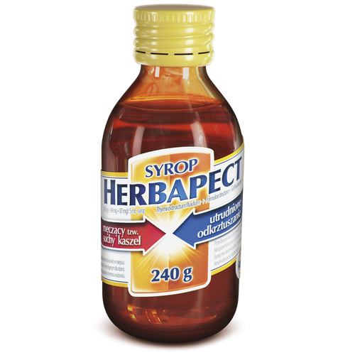 Syrop Herbapect jest zadomowiony w rodzinnych apteczkach już od wielu lat - i nie ma się czemu dziwić, ponieważ jest to lek, który pomaga zarówno przy męczącym tzw. suchym kaszlu, jak i przy utrudnionym odkrztuszaniu.